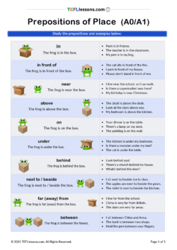 Prepositions Of Place Lesson Tefllessons Com Esl Worksheets